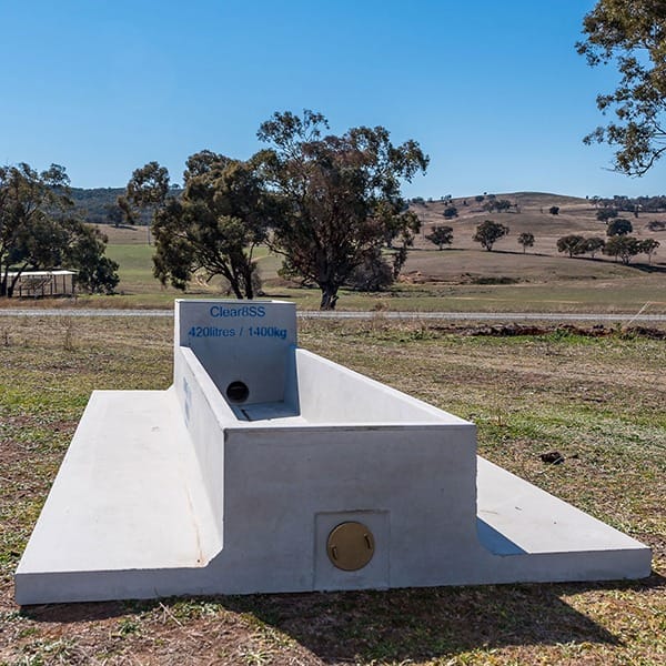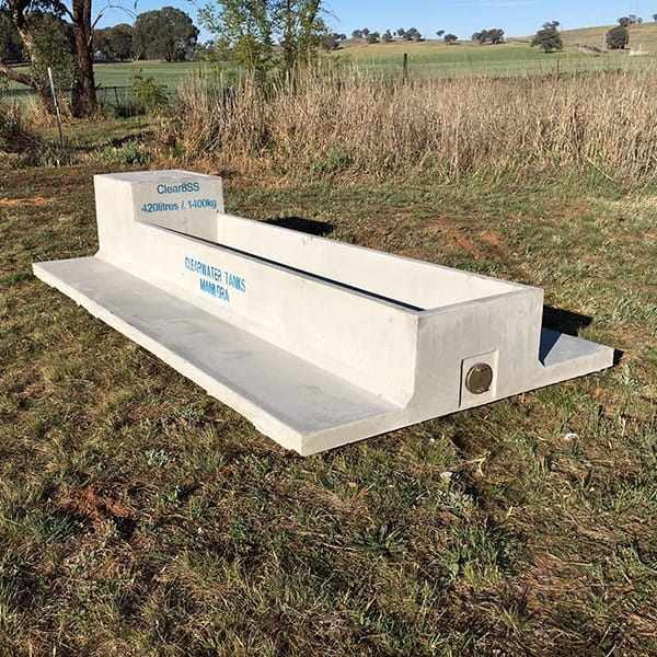 A concrete sheep water trough with stabilising pad for farm use with stock health and water quality at the forefront of our design.
