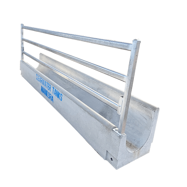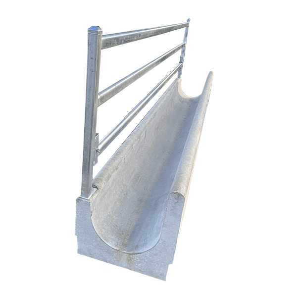 The Sheep Feed Trough was designed in conjunction with a local feedlot for ease of feeding and cleaning. The straight sides allow for a feed cart to run up the side filling the trough; the U-shape trough means they can be cleaned with a Bobcat sweeper.